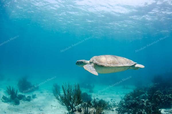 6 out of the Total 7 Turtle Species in the World are Found in Mexico! Six of which are only found in Mexico. While diving or snorkeling, we can often meet 3 of the 6 species of sea turtles in Riviera Maya. And they are: the Green Turtle, the Loggerhead, the Hawksbill.